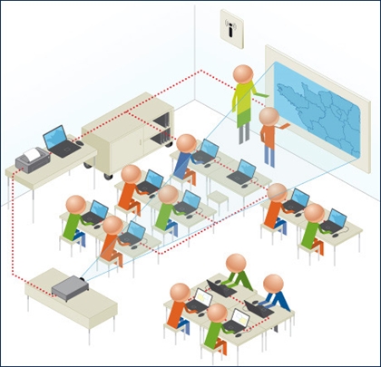 => une classe mobile (ordinateurs portables) ; => un tableau blanc interactif ; => une mise en réseau des équipements de l'école ; => une sécurisation des accès internet ; => des ressources numériques pédagogiques.
